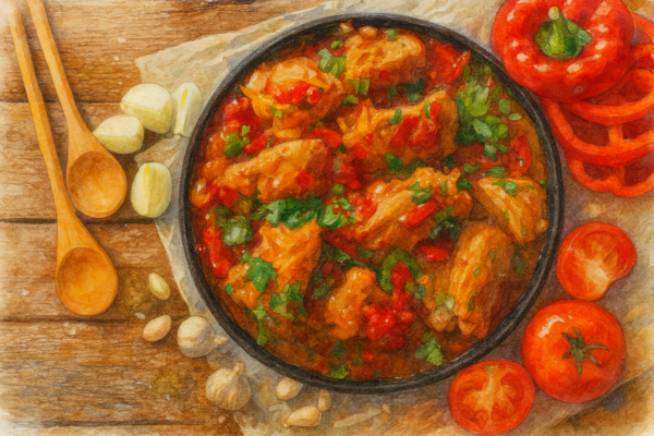 Poulet basquaise, l’équilibre du feu et du soleil Plat du sud par excellence, le poulet basquaise marque bien